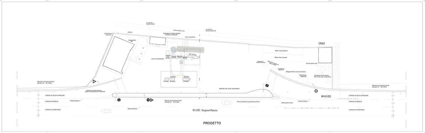 Analisi e verifica della sicurezza, progettazione preliminare della nuova distribuzione funzionale dell’area carburanti per la ridefinizione delle corsie specialistiche sul Raccordo Autostradale n. 05 Sicignano–Potenza.